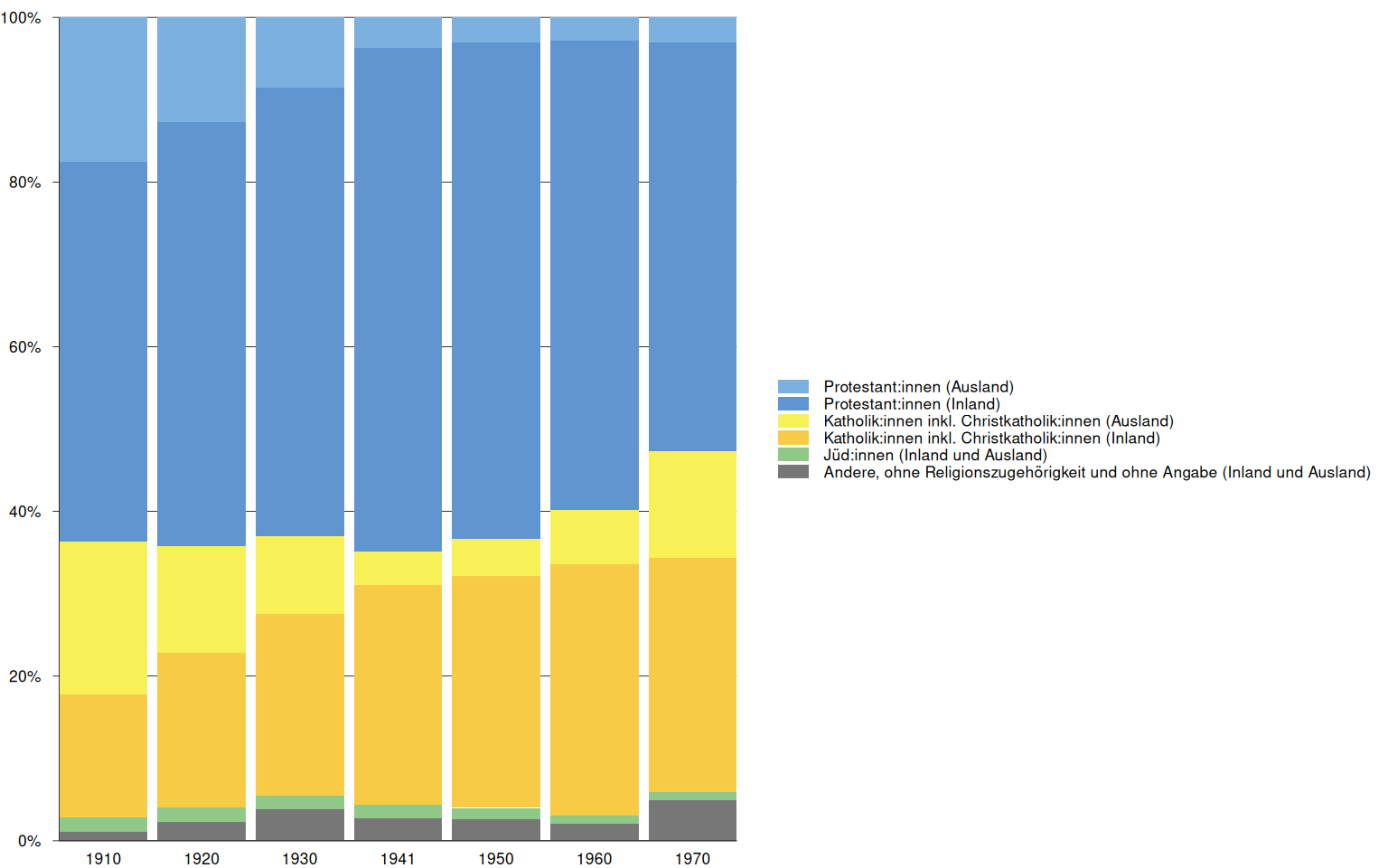 Citation (Dataset) | Stadt.Geschichte.Basel: Wohnbevölkerung im Kanton Basel-Stadt nach Religionszugehörigkeit und Herkunft, 1910–1970. Forschungsdatenplattform Stadt.Geschichte.Basel, https://forschung.stadtgeschichtebasel.ch/items/abb15429.html#m15429_3, letzte Aktualisierung: 06.10.2025. |