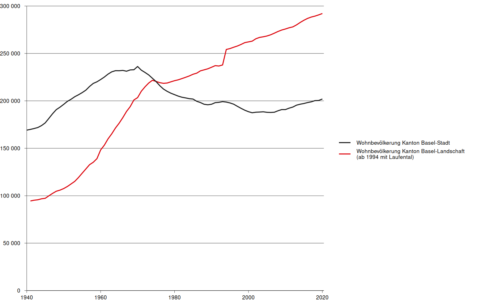 Title | Bevölkerungsentwicklung in den Kantonen Basel-Stadt und Basel-Landschaft, 1940–2020 |
