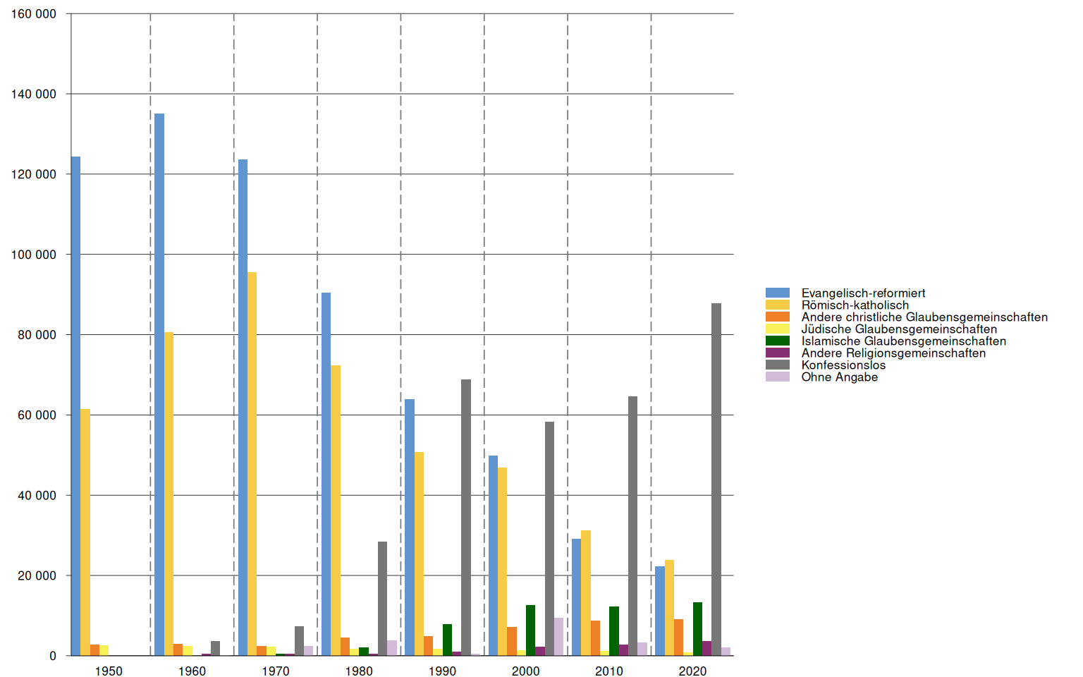 Religionszugehörigkeiten in Basel-Stadt, 1950–2020