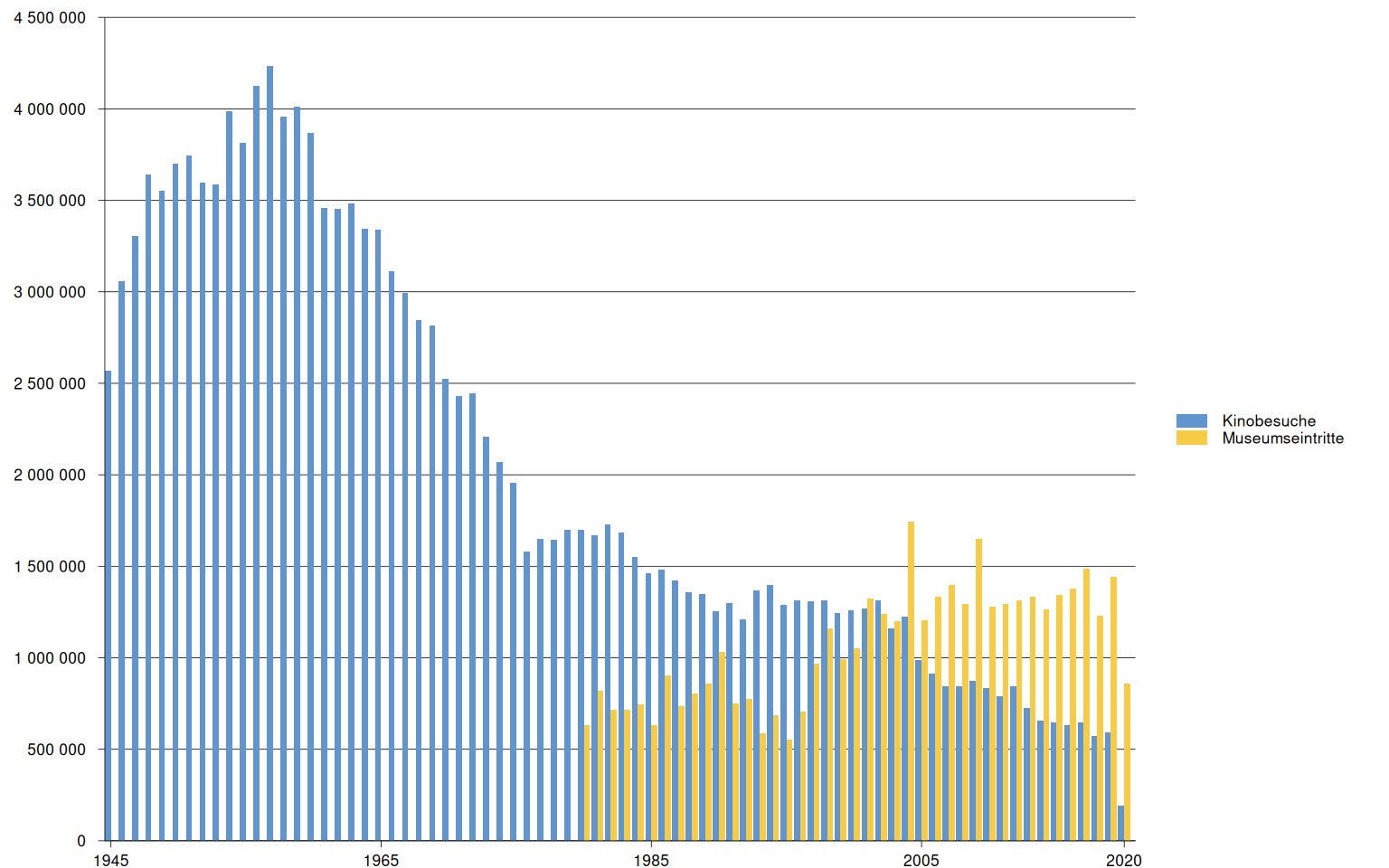 Title | Museumseintritte und Kinobesuche in Basel-Stadt, 1945–2020 |