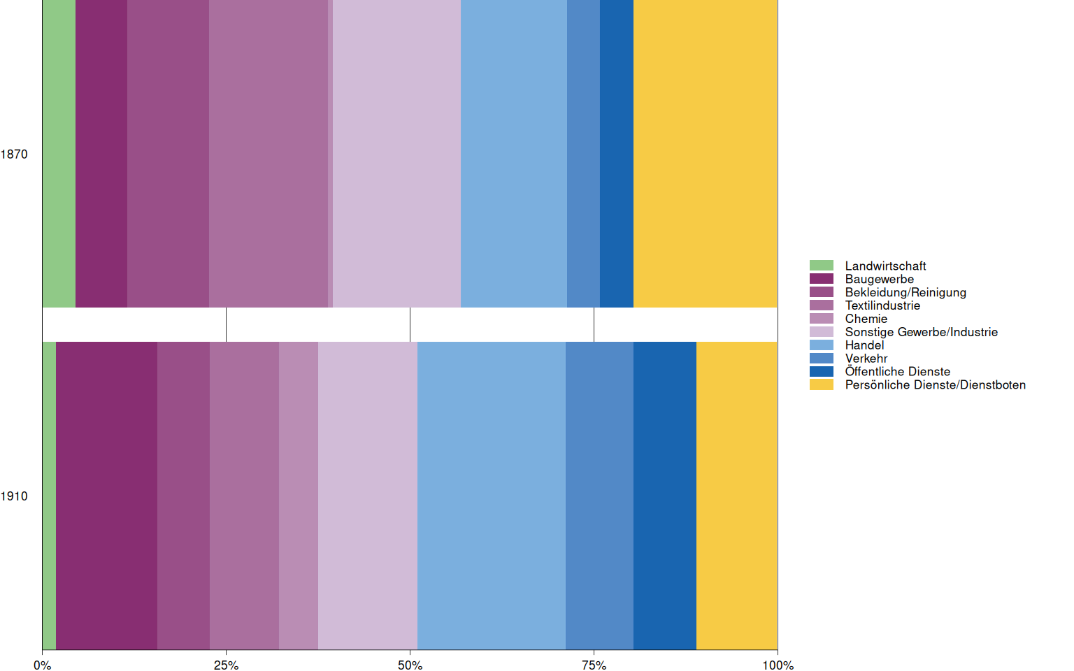 Title | Anteil der Erwerbstätigen in wichtigen Branchen, 1870 und 1910 |