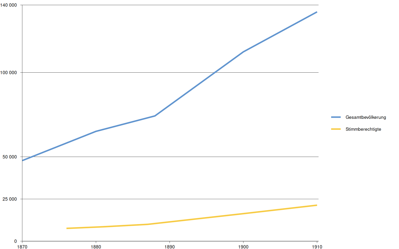 Stimmberechtigte und Gesamtbevölkerung, 1870–1910